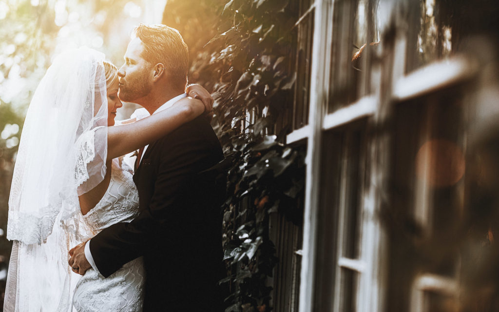 It had rained the entire morning of David and Blythe’s ceremony, stopping about an hour before and starting back up just as Jay was leaving. Just before he was about to pull away, he hopped out and grabbed a few more shots of the two of them in the rain. A perfect ending to an already pretty perfect day for them. A day they didn’t think would even happen just a few weeks prior with the pandemic still going strong. Blythe even had a custom-designed face mask to wear that matched her wedding gown which you can see above.